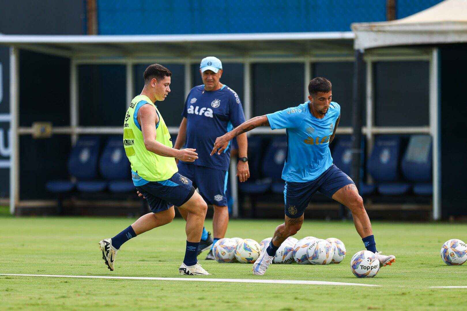 Logo após o retorno, os atletas que começaram o jogo da noite anterior, que resultou na classificação do Grêmio para a terceira fase da Copa do Brasil, realizaram um trabalho de recuperação física na academia do CT Luiz Carvalho. Já no campo, o técnico Gustavo Quinteros comandou um treinamento técnico com foco em aprimoramento individual e coletivo.