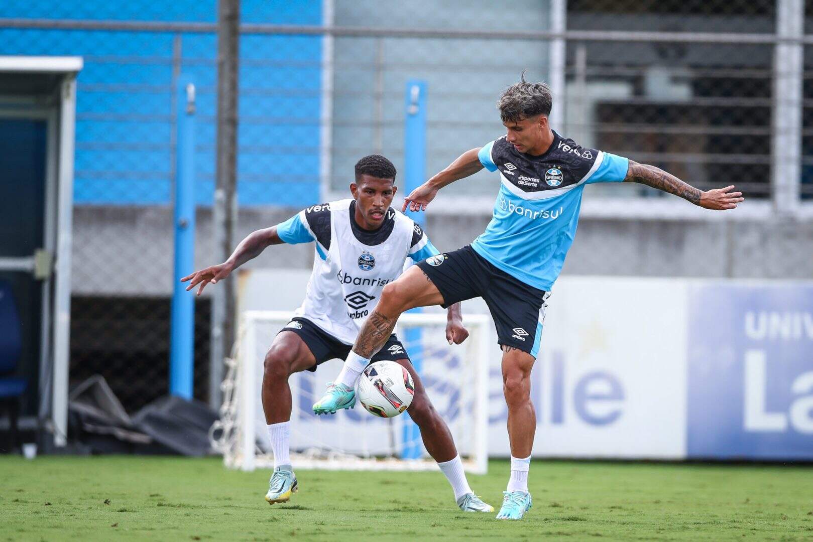 Durante o aquecimento orientado pela equipe de preparação física, os jogadores realizaram exercícios de força e agilidade no gramado. Depois, com o comando do técnico Renato Portaluppi, equipes foram separadas para uma atividade tática com objetivo de finalização em goleiras menores.