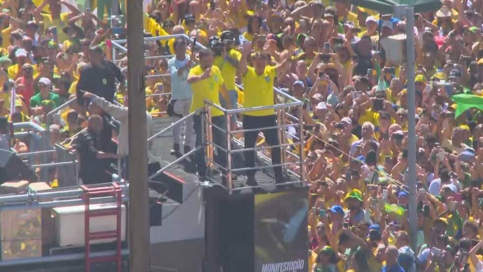 Apoiadores de Jair Bolsonaro participaram, na manhã deste domingo (21), de uma manifestação na Praia de Copacabana, Zona Sul do Rio de Janeiro, em apoio ao ex-presidente. Em seu discurso, o ex-chefe do Executivo fez ataques ao presidente Luiz Inácio Lula da Silva, e defendeu o bilionário Elon Musk. Ele também criticou o inquérito de que é alvo, que apura uma eventual tentativa de golpe de Estado, e as duas condenações do Tribunal Superior Eleitoral (TSE), que o tornaram inelegível.