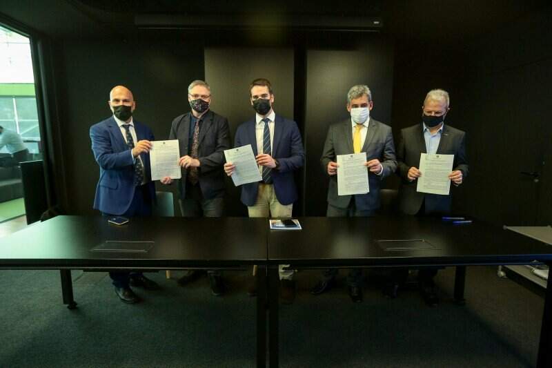 No quarto dia da missão governamental à Europa, o governador Eduardo Leite assinou, nesta quinta-feira (7), em Barcelona, na Espanha, um memorando de entendimento com a universidade Ramon Llull para cooperação no desenvolvimento de projetos. O objetivo do acordo, assinado também pelo secretário de Inovação, Ciência e Tecnologia, Luís Lamb, pelo prefeito de Porto Alegre, Sebastião Melo, e pelo pró-reitor da Pontifícia Universidade Católica do Rio Grande do Sul, Jorge Audy, é dar ênfase às áreas de ecossistemas regionais de inovação, governança, tecnologias digitais, inovação aberta, smart cities e living labs, desenvolvimento sustentável, educação e cultura empreendedora.