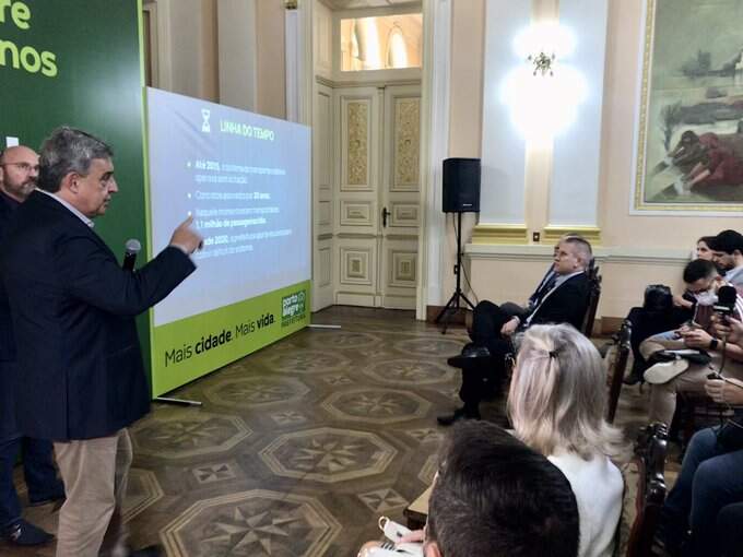 O prefeito de Porto Alegre, Sebastião Melo realizou nesta quarta-feira (20), no Salão Nobre da prefeitura, a coletiva de imprensa sobre a tarifa do transporte coletivo da Capital. O valor atual, de R$ 4,80, foi mantido.