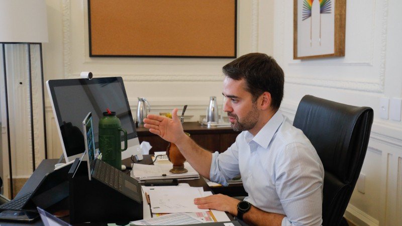 O governador Eduardo Leite participou, na manhã desta terça-feira (22), de reunião do Fórum de Governadores. A 10ª edição da reunião ocorreu de forma presencial no Palácio do Buruti, em Brasília, mas o governador participou por videoconferência. A principal pauta do encontro, mais uma vez, foi a tributação do ICMS (Imposto sobre Circulação de Mercadorias e Serviços) nos combustíveis.