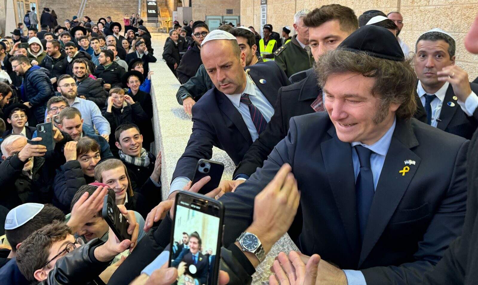 Ele ficou com os olhos vermelhos e passou vários minutos no muro, com a testa tocando as pedras e os braços estendidos. Acompanhado pelo rabino Axel Wahnish, atual embaixador argentino em Israel e seu guia espiritual na aproximação ao judaísmo, Milei rezou e beijou a fortificação considerada sagrada.