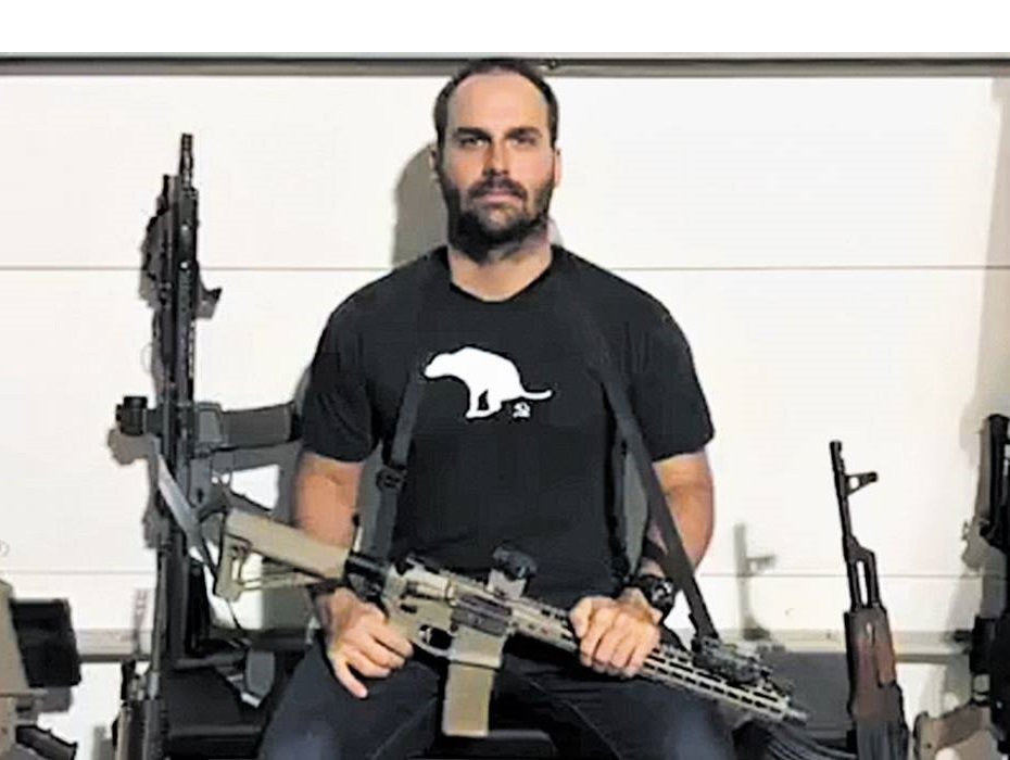 Um grupo armamentista promoveu uma manifestação na Esplanada dos Ministérios, em Brasília, na manhã desse domingo (9). Dentre os participantes estava o deputado federal Eduardo Bolsonaro (PL-SP), filho do ex-presidente Jair Bolsonaro e que subiu em um carro de som em frente ao Congresso Nacional para defender mudanças na legislação sobre porte e posse de armas-de-fogo.