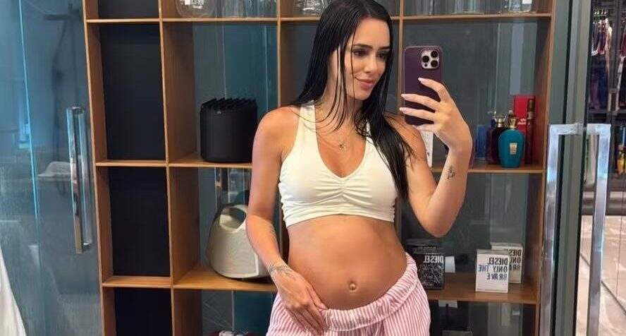 Nessa quarta-feira (19), Bruna Biancardi usou os stories de seu Instagram para exibir o tamanho da barriguinha de sua segunda gestação, de cinco meses. A modelo, de 30 anos, está à espera de Mel, sua segunda filha com Neymar Jr. Eles já são pais de Mavie, de 1 ano.