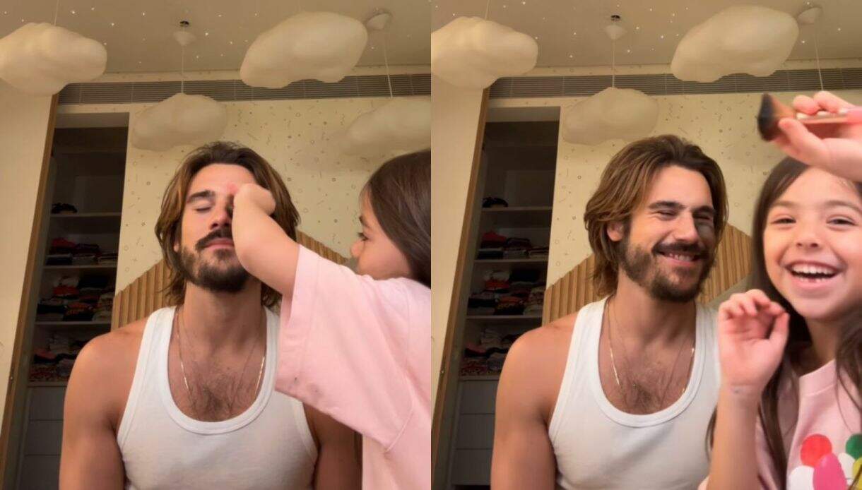 Nicolas Prattes compartilhou com seus seguidores vídeos com Zoe, filha de Sabrina Sato e enteada do ator, onde a criança o maquiava. “Tudo bem. Vamos deixar tudinho. Super bonito para você adorar. Todo mundo, seus amigos te adorarem com a maquiagem nova que você vai usar”, disse a filha de Sabrina Sato.