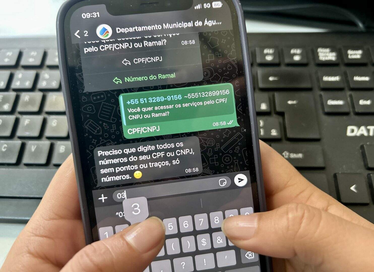 É tudo relativamente simples. Basta enviar um texto de “oi”, por exemplo, para o número (51) 3289-9156. O sistema virtual é então acionado, com o fornecimento de um número de protocolo de serviço e a solicitação do CPF (pessoa física), CNPJ (empresa) ou ramal de água do imóvel.