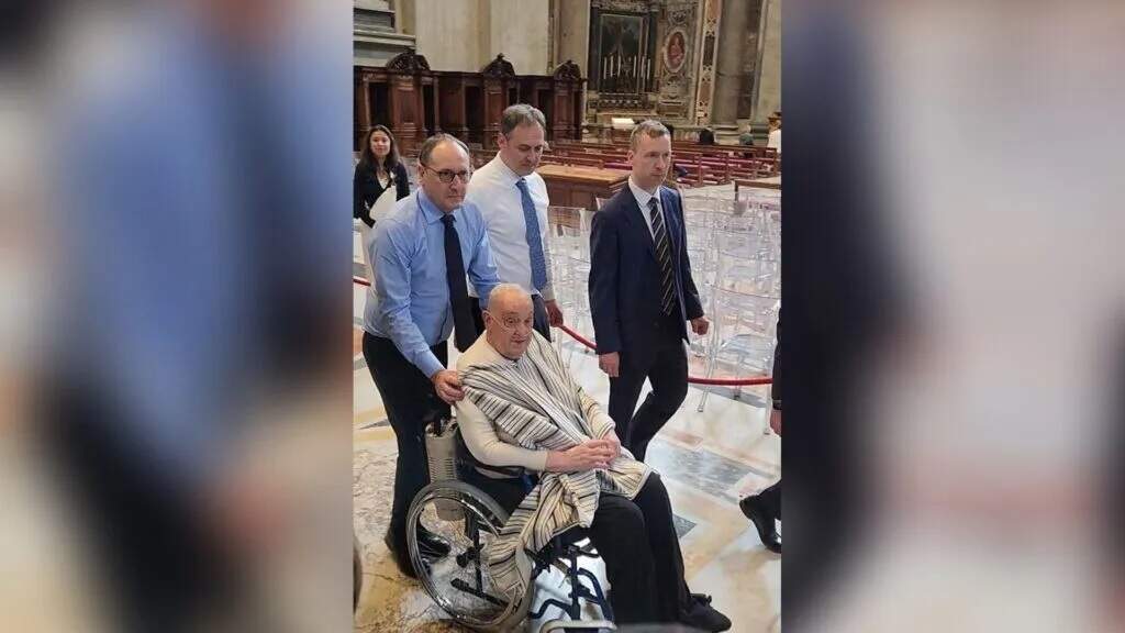 Nesta quinta, um vídeo verificado pela agência de notícias Reuters mostra o papa acenando para os visitantes da basílica enquanto os assistentes empurram sua cadeira de rodas. O pontífice apareceu com uma pequena mangueira nasal em que recebe oxigênio suplementar.