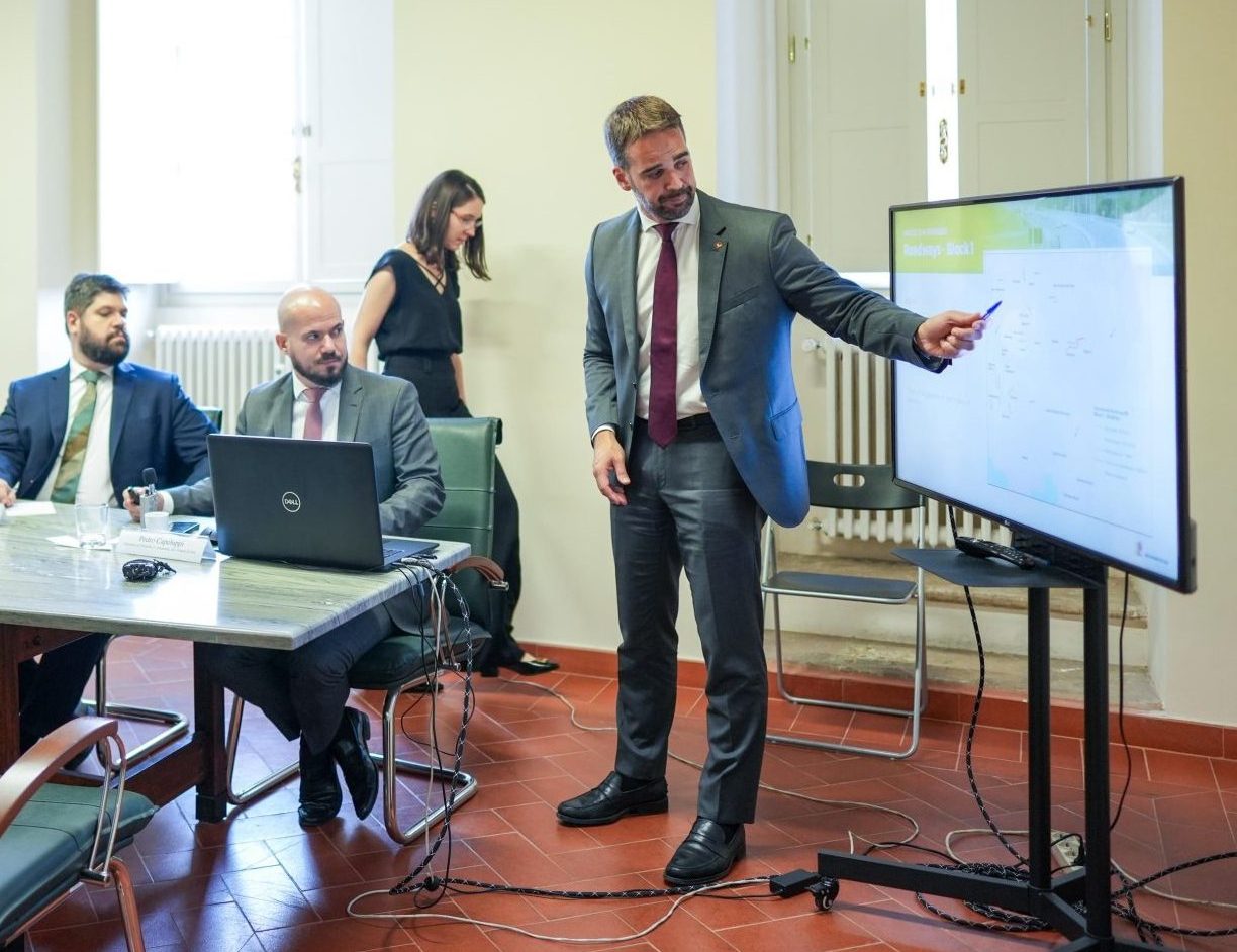 Antes, a comitiva havia se reunido na Embaixada do Brasil em Roma com representantes da Sace (agência pública de fomento), da Simest (agência privada no segmento financeiro) e do banco privado Intesa Sanpaolo (banco privado). Foram ressaltados projetos do governo gaúcho em infraestrutura, saneamento básico, mobilidade, segurança e lazer, dentre outros.
