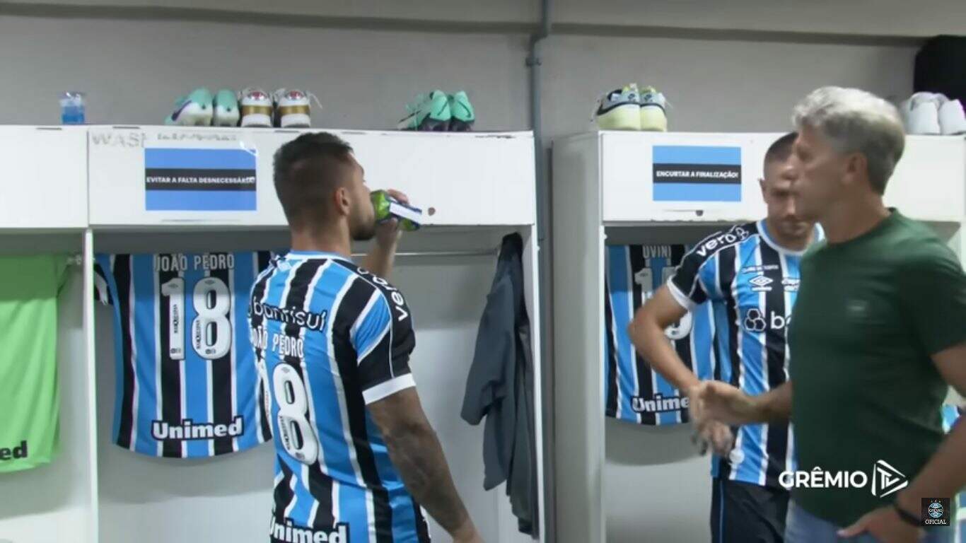 Após a vitória contra o Brasil de Pelotas no domingo (28) pelo Campeonato Gaúcho, o Grêmio divulgou no YouTube o seu vídeo institucional de bastidores. Na publicação, é possível notar recados na parede deixados pelo técnico Renato Portaluppi, que estava no vestiário.