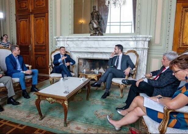 O governador Eduardo Leite recebeu em Porto Alegre nesta quinta-feira (30) a visita do embaixador do Canadá no Brasil, Emmanuel Kamarianakis. Na pauta do encontro, realizado no Palácio Piratini com a presença do secretário estadual de Desenvolvimento Econômico, Ernani Polo, estavam relações comerciais e oportunidades de investimento no Rio Grande do Sul para empresas do país da América do Norte.