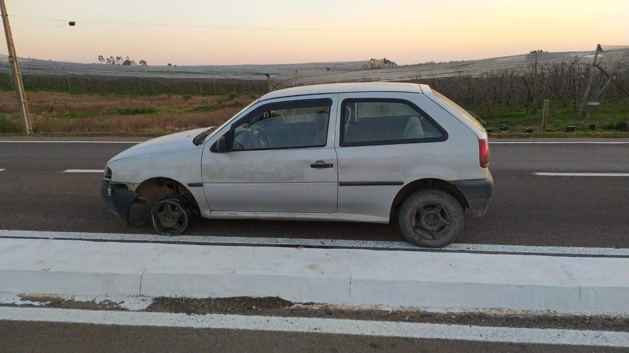 Por volta das 6h, a PRF foi informada pela BM que um automóvel havia colidido com o canteiro da rodovia no acesso secundário a Bom Jesus, passando a transitar sem um dos pneus.
