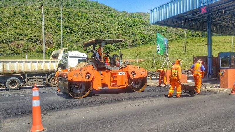 Nesta quarta-feira (05), equipes técnicas fazem a manutenção asfáltica do pavimento entre os quilômetros 20 e 21, na praça de pedágio da rodovia — um dos principais corredores para quem se desloca em direção ao Litoral Norte gaúcho.