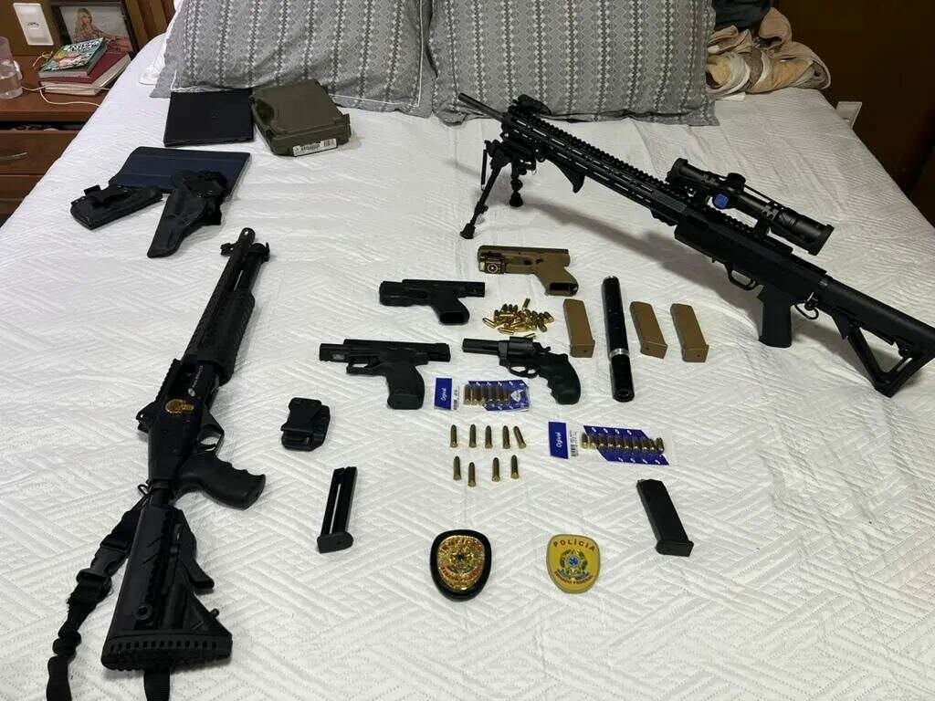 Na casa do empresário, a polícia encontrou dez armas, entre elas um fuzil, duas espingardas e cinco pistolas semiautomáticas, um silenciador de fuzil comprado ilegalmente e mais de 3 mil munições.