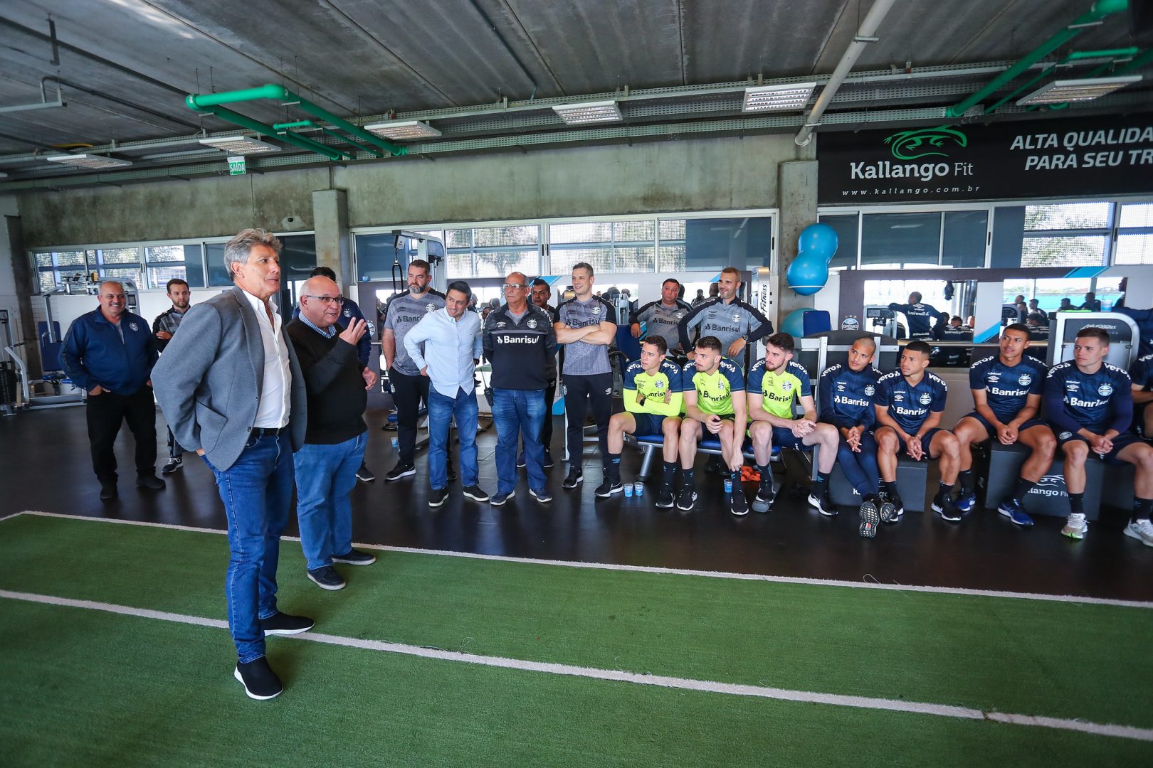 O novo técnico do Grêmio se reapresentou nesta segunda-feira (05), no CT Luiz Carvalho, em Porto Alegre. Renato Portaluppi conversou com os atletas no vestiário, mas não foi a campo. O treino foi todo físico, comandado pelo preparador Réverson Pimentel e sua equipe.