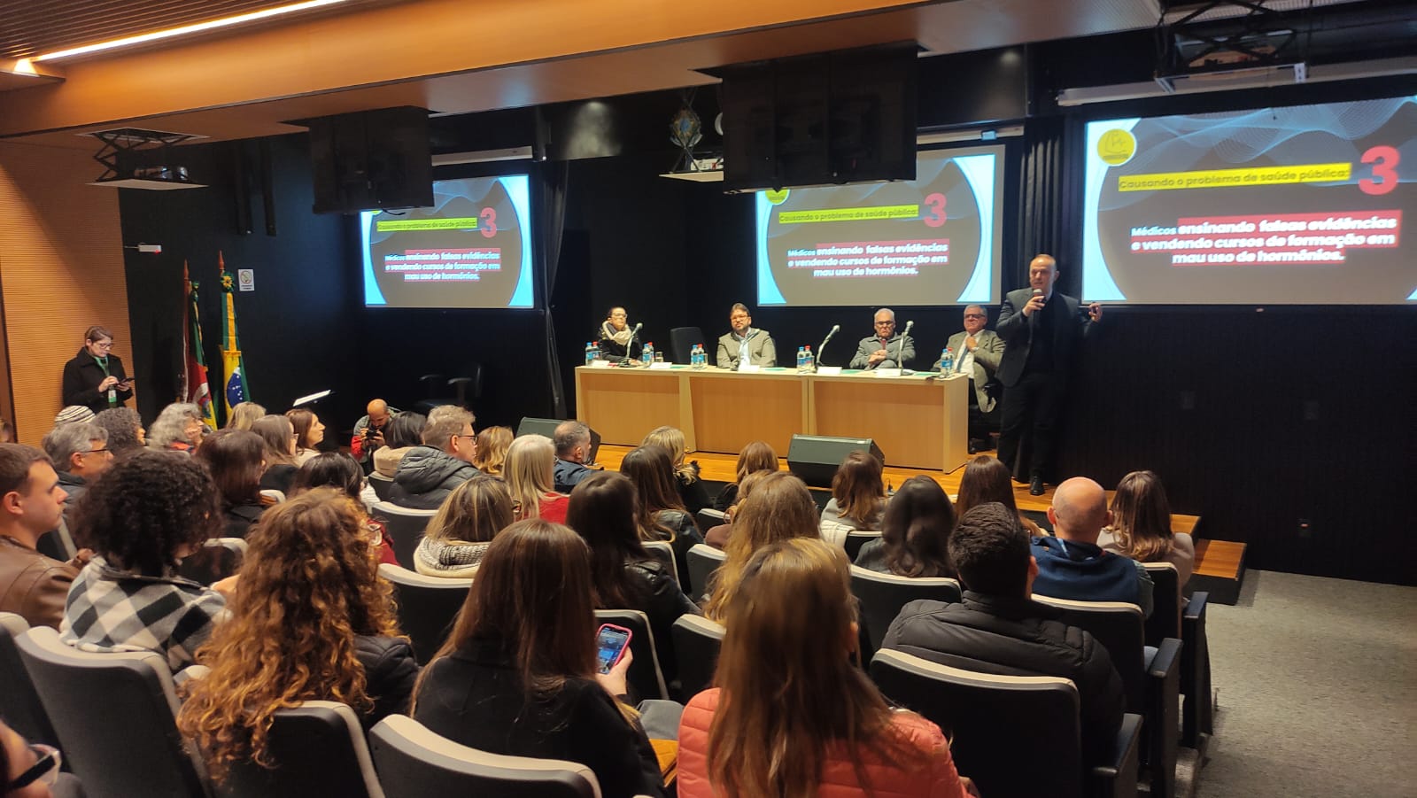 O presidente do Cremers, Eduardo Neubarth Trindade, abriu o debate, salientando a importância da discussão. “A proposta é esclarecer a sociedade e buscar apoio para ações unificadas e efetivas para alterar um grave cenário, em que maus profissionais promovem práticas irregulares e danosas colocando em risco a saúde da população”, disse Trindade.