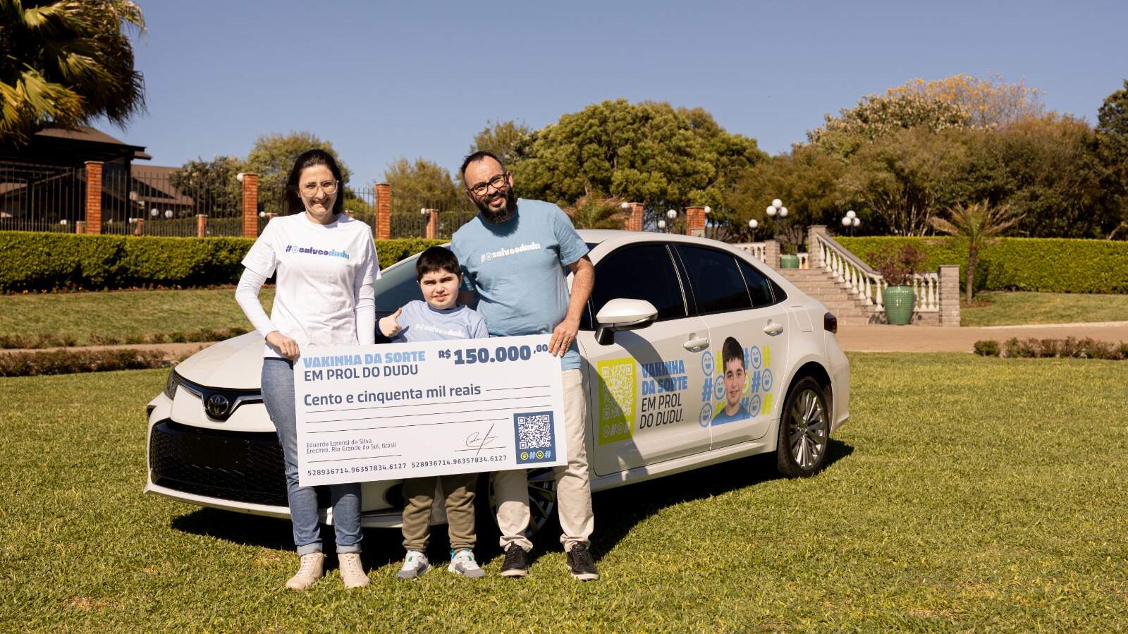 Com apenas R$ 1,00, qualquer pessoa pode participar do sorteio de um Toyota Corolla 0 km ou R$ 150 mil via PIX. Cada doação gera um número da sorte, que funciona como um bilhete para concorrer aos prêmios. Toda a arrecadação será destinada exclusivamente ao tratamento do Dudu, oferecendo a ele uma chance real de mudar sua história.