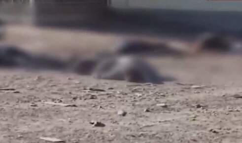 Imagens borradas divulgadas por uma TV ucraniana mostram civis mortos na cidade do Norte do país.