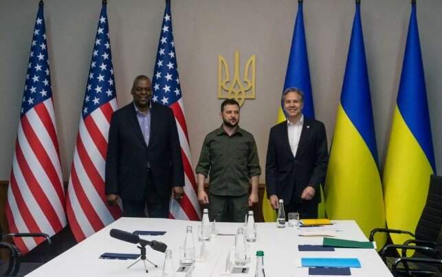 Em reunião com o presidente ucraniano, Volodymyr Zelensky, Blinken e Austin avaliaram que a Ucrânia tem condições de vencer a guerra desde que tenha os armamentos certos.
