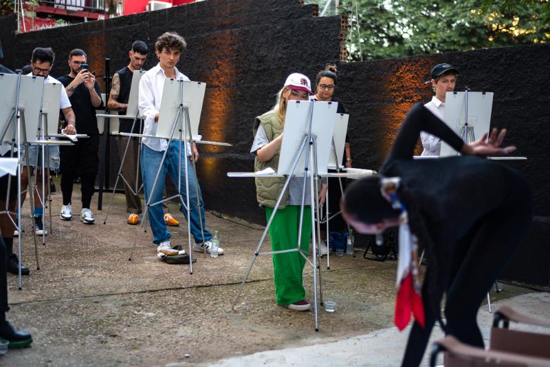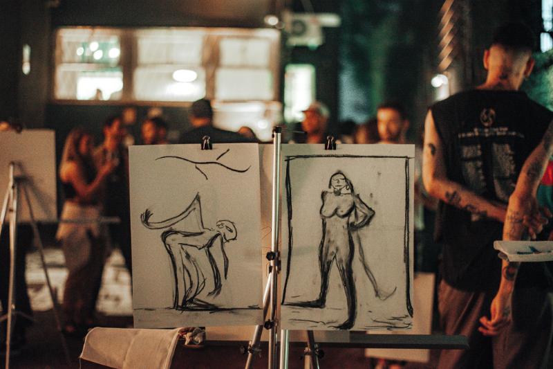 No segundo andar do espaço, os participantes foram convidados a expressarem-se livremente desenhando um modelo nu, utilizando apenas papel e carvão, com sessão conduzida pelo artista Wagner Costa. Já na área externa do estúdio aconteceu uma sessão de desenho livre, com o uso de carvão e tinta, ministrada pelo artista Artur Dornelles. A atmosfera criativa foi realçada com um set assinado pela DJ Viridiana, com um repertório ao vivo cocriando com o artista e os alunos. A iniciativa do projeto Rabiscos foi concebida por Leonardo Dewes, idealizador da Vorbi e contou com a colaboração da curadoria e direção criativa do jornalista e produtor Xarão.