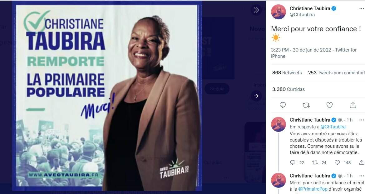 Taubira obteve a melhor avaliação, à frente do ecologista Yannick Jadot, do esquerdista Jean-Luc Mélenchon, do eurodeputado Pierre Larrouturou e da socialista Anne Hidalgo. “Obrigada por sua confiança”, disse Taubira, ex-ministra socialista da Justiça, perante simpatizantes em Paris. “Queremos uma esquerda unida, queremos uma esquerda de pé, temos um longo caminho pela frente”, acrescentou.