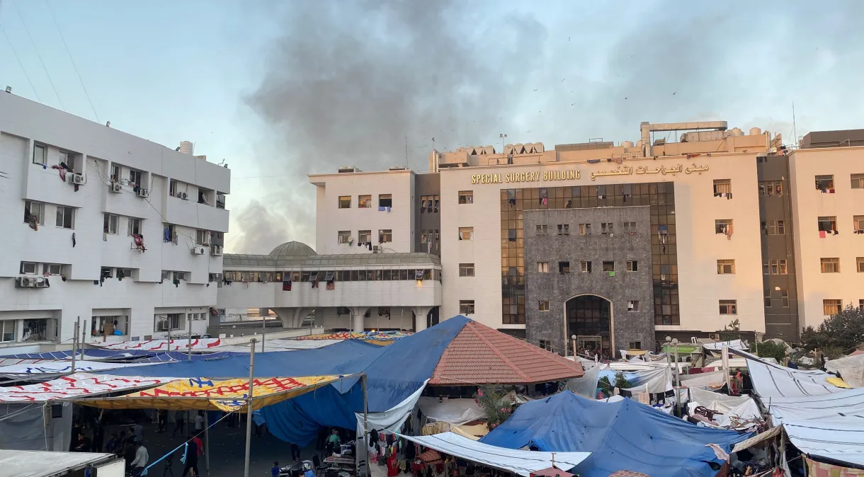 O Al-Shifa, o maior hospital da Faixa de Gaza antes da guerra, é agora uma das únicas instalações de saúde que está parcialmente operacional no norte do território, e também alberga centenas de civis deslocados.