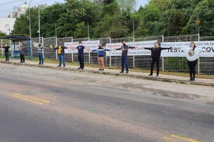 Presente no ato, a cúpula do Sindicato dos Metalúrgicos da Grande Porto Alegre (Stimepa) divulgou então uma nota de repúdio à proposta: