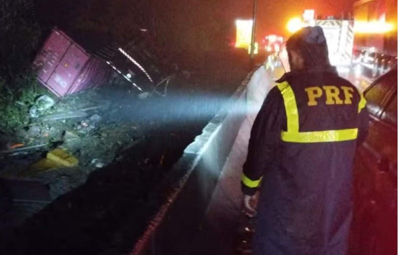 Conforme a PRF informou inicialmente, a carreta, dirigida por um homem de 30 anos, que se feriu levemente, teria perdido os freios, colidindo na traseira da van. O veículo foi projetado à frente, batendo na traseira do automóvel conduzido por um homem, que estava sozinho e não se feriu.