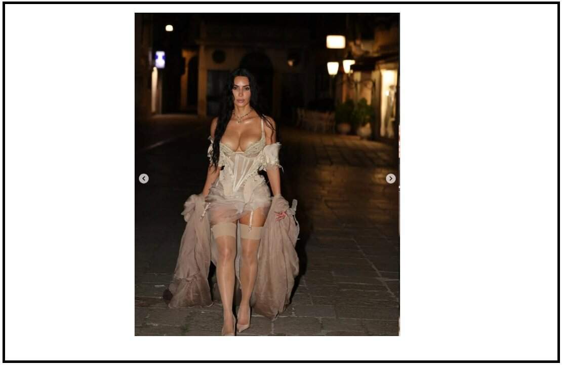 Como foi o caso de Kim Kardashian, que optou por usar uma peça de Dilara Findikoglu, composta por uma lingerie rosé, com cinta-liga, meias e um penoar longo que se arrastou pelas ruas italianas. Já suas irmãs, Kyle e Kendall Jenner, escolheram peças modernas – a caçula escolheu um top de cristais com franjas e uma saia longa branca e a modelo por um look azul royal com capuz. Quem também esteve presente foi sua mãe, Kris Jenner, que usou um look preto com uma sobreposição com penas.