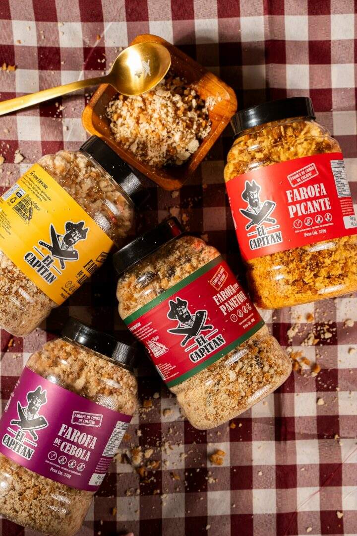 Reconhecida como a primeira farofa de pote do Brasil, a El Capitan Churrasco é produzida sem glúten, sem lactose e sem conservantes, alinhando-se à missão do fundador da marca, o assador gaúcho André Ferrari: “resgatar a comida de verdade e valorizar o prazer de comer bem”.