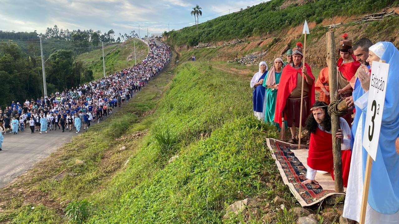 Cerca de 3 mil pessoas participaram da 3ª edição da “Caminhada Penitencial e Via Sacra’’ em Encantado, no Vale do Taquari, na manhã da Sexta-feira Santa (29). O evento, organizado pela Paróquia São Pedro e com o apoio da Associação Amigos de Cristo Protetor, teve início às 5h30min da manhã, tendo como ponto de partida na Igreja Matriz do município.
