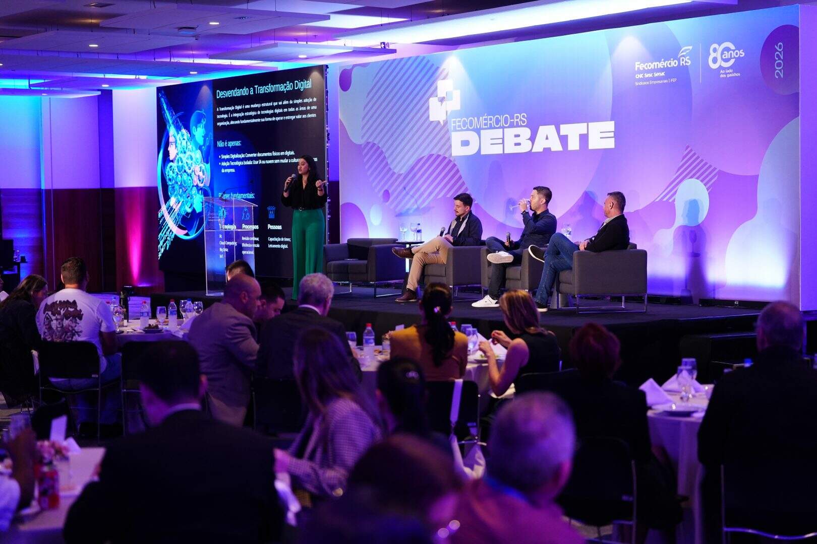 A inteligência artificial como motor de transformação estrutural dos negócios foi o eixo central da 3ª edição de 2026 do Fecomércio-RS Debate, realizada no final da manhã desta quinta-feira (23), na Casa do Comércio Gaúcho, em Porto Alegre. O encontro recebeu empresários, especialistas e autoridades para discutir como a adoção estratégica de tecnologias está redesenhando a forma de operar, vender e se relacionar com clientes.