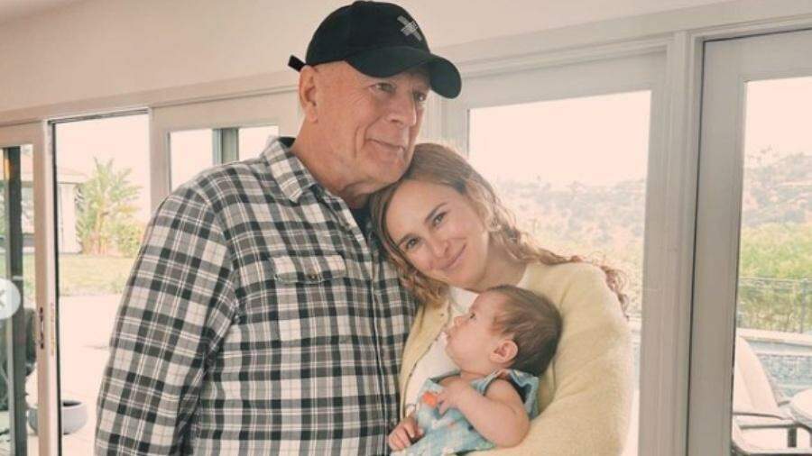 Rummer Willis, filha mais velha de Bruce Willis e Demi Willis, postou em seu Instagram um raríssimo registro do ator após o diagnóstico de demência frontotemporal. Ela compartilhou fotos do astro com a primeira neta, Louetta, filha dela com o músico Derek Richard Thomas para celebrar o Dia dos Pais americano, comemorado neste domingo (18).