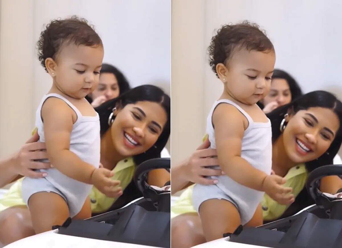 Thaynara OG postou no Instagram, nesta quinta-feira (29), um vídeo fofíssimo com Liz, a filhinha de Lore Improta e Leo Santana, que completou 1 ano com um festão em Salvador, e ganhou da “tia” um carrinho eletrônico mini Jaguar de quase R$ 3 mil. Nas imagens inéditas, a influencer maranhense brinca com a menina, toda fofa e empolgada com seu “possante”.
