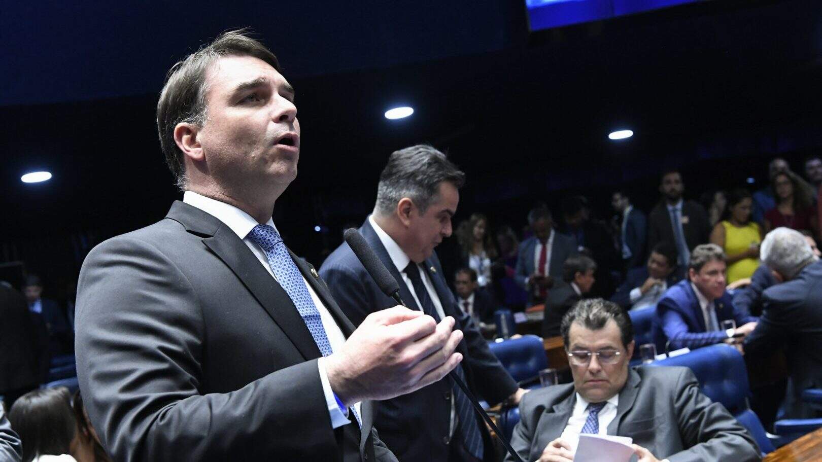 “Sobre o que está sendo noticiado hoje com relação ao senador Marcos do Val, ele já havia me relatado o que tinha acontecido, que isso seria trazido a público. Contudo, numa linha de que essa reunião que aconteceu, ela seria uma tentativa de um parlamentar de demover as pessoas que estavam nessa reunião de fazer algo absolutamente inaceitável, absurdo e ilegal”, diz Flávio Bolsonaro.