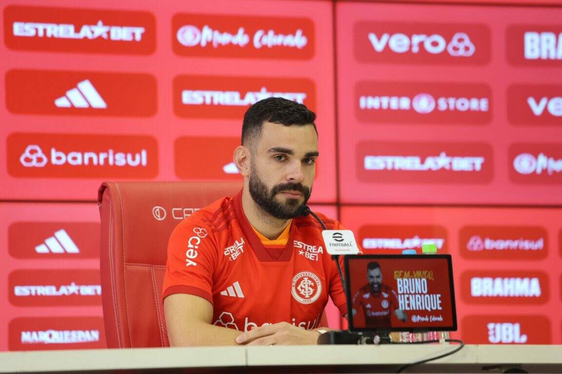 Novo reforço do Inter, Bruno Henrique foi oficialmente apresentado pelo clube gaúcho na tarde desta quarta-feira (19). O meio-campista de 33 anos concedeu sua primeira entrevista na sala de imprensa do estádio Beira-Rio. O atleta assinou contrato até dezembro de 2025.