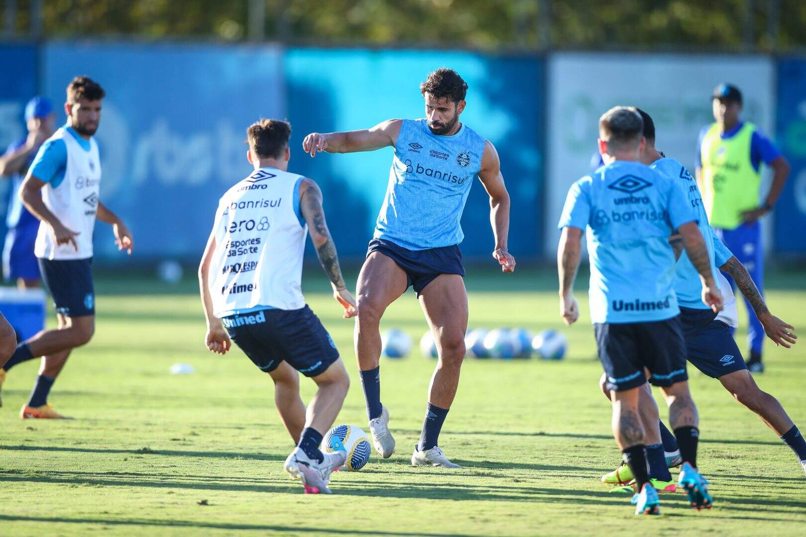 Antes do trabalho com bola, o técnico Renato Portaluppi reuniu o grupo no gramado e conversou por aproximadamente dez minutos com todos os jogadores.