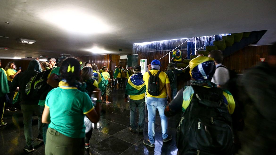 O Gabinete de Segurança Institucional da Presidência da República (GSI) divulgou, em seu site, arquivos das imagens das câmeras do circuito interno de segurança do Palácio do Planalto gravadas no dia 8 de janeiro de 2023. Nesse dia, centenas de manifestantes invadiram e vandalizaram a sede do Poder Executivo.