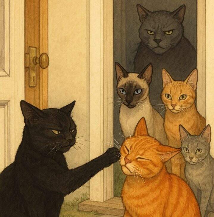 Mas conquistar um lar não é tarefa simples, ainda mais quando existe uma “Gata Pretinha”, a dona veterana da casa, acostumada a observar tudo do alto da sua autoridade felina.