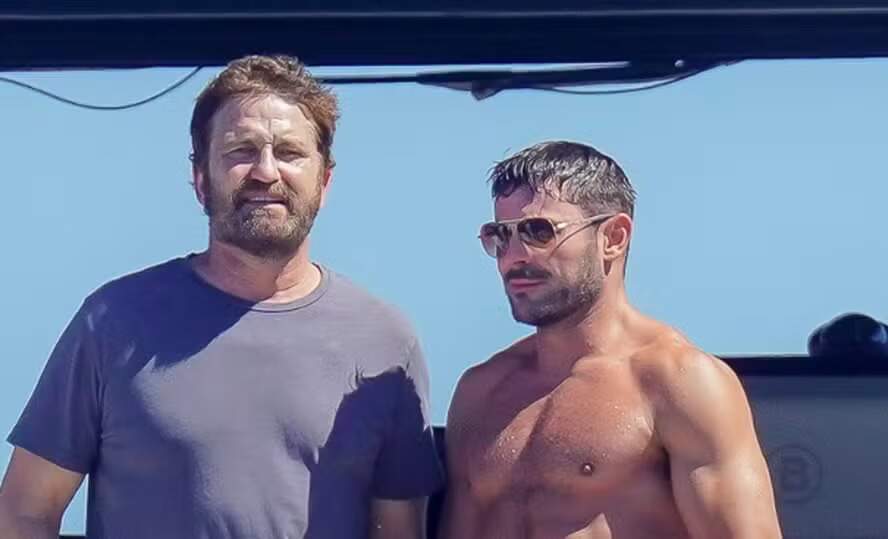 Gerard Butler e Zac Efron curtem passeio de iate (Foto: Grosby)