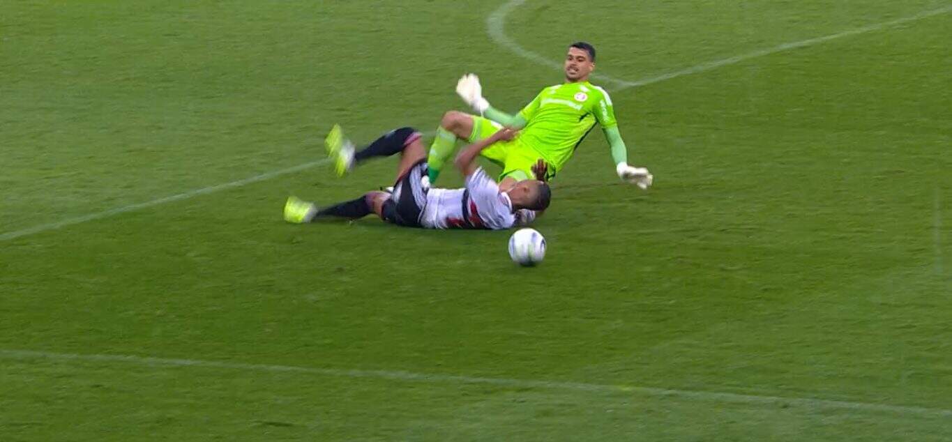 O árbitro Paulo Cesar Zanovelli deu cartão amarelo para o goleiro. O centroavante Calleri bateu no meio do gol. Keiller pulou para o lado e ainda levou o gol pelo meio das pernas.