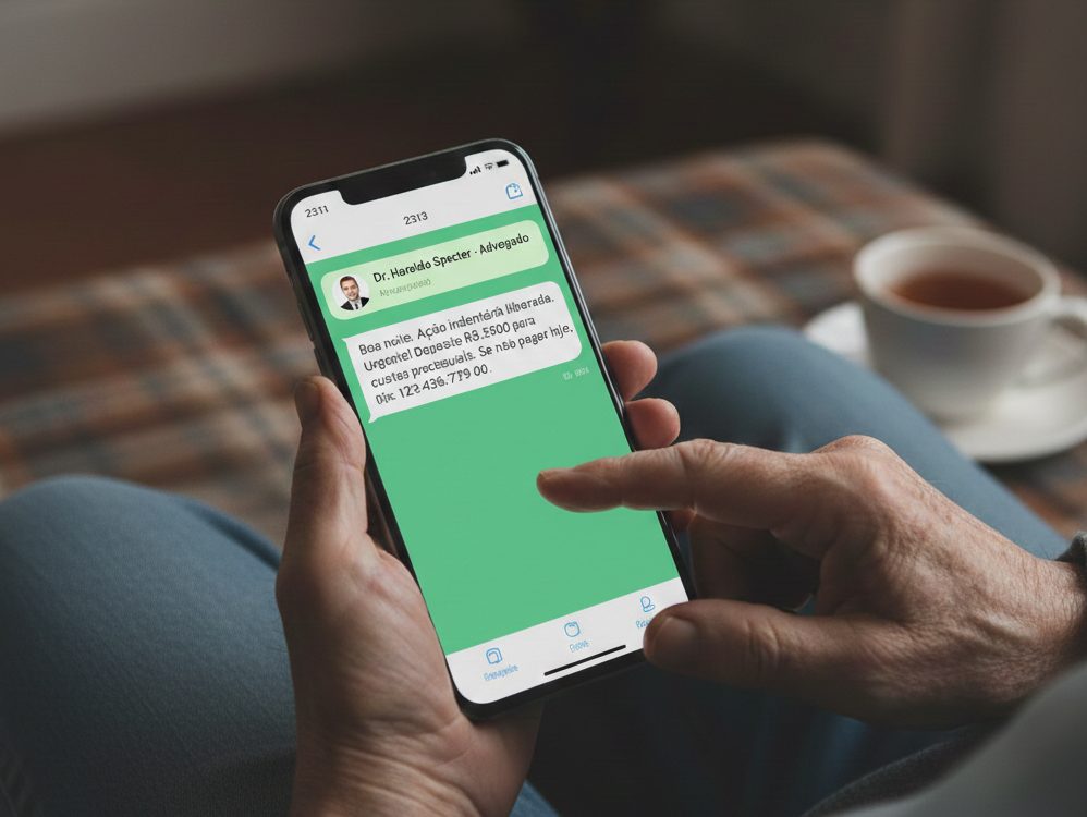 Nesse tipo de crime, o estelionatário cria perfil falso de profissional regularmente inscrito na entidade, utilizando nome, imagem e informações profissionais verdadeiras. Ele então envia mensagem à vítima, simulando vitória em ação judicial e solicita pagamento antecipado de taxas, custas ou impostos para liberar o suposto valor, geralmente via pix.