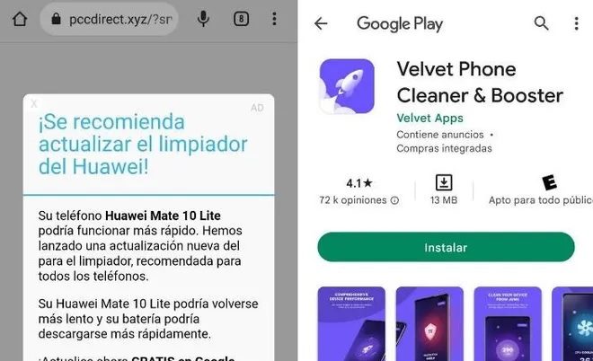 A etapa final depende da geolocalização do usuário. Em alguns casos, o usuário verá uma mensagem de que seu telefone não está funcionando bem e é levado à Google Play Store para download de um software que auxilia. O Velvet Phone Cleaner & Booster, que segue no ar até o momento em que esta reportagem é publicada, já acumula mais de 10 milhões de download e exibe anúncios sucessivos à vítima mesmo fora da própria aplicação, com todo o rendimento indo para o bolso dos golpistas.
