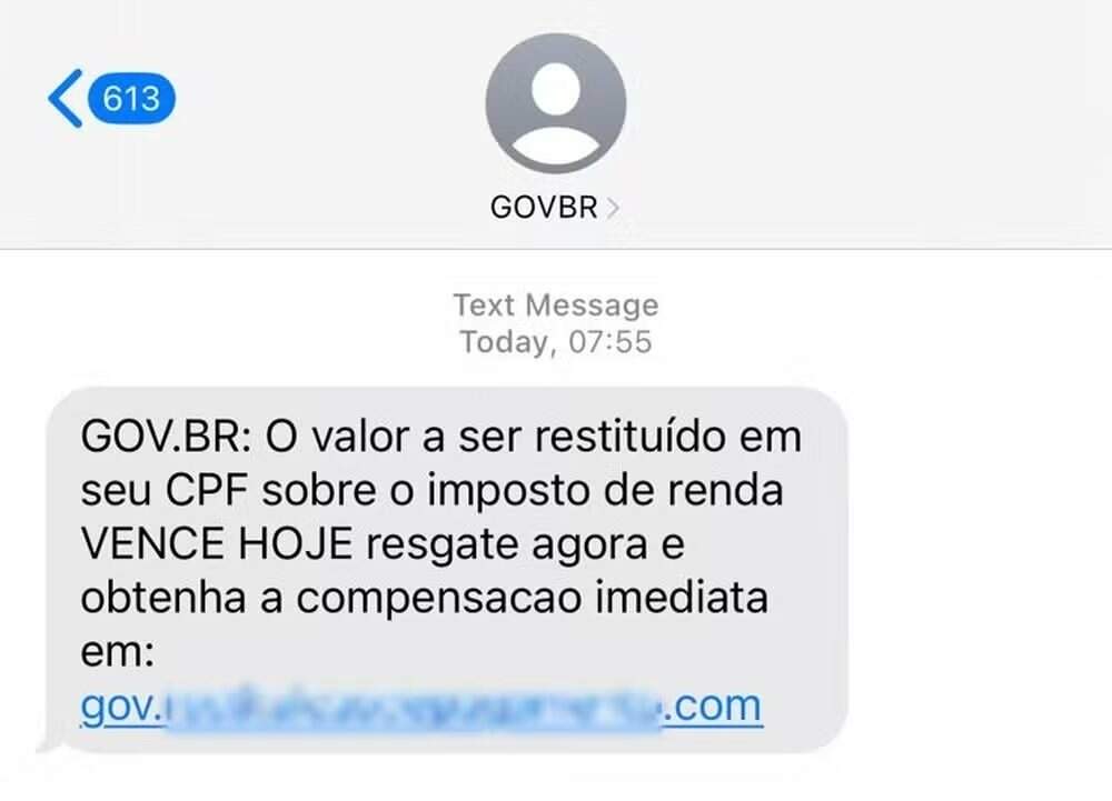 Criminosos estão se passando pelo governo federal em mensagens fraudulentas sobre a restituição do Imposto de Renda. O golpe da vez tenta induzir as vítimas a enviarem um Pix para agilizar o suposto pagamento. Tudo começa em um SMS com um alerta falso de que o valor a ser restituído no Imposto de Renda está prestes a vencer e que, para o contribuinte receber o pagamento imediatamente, é preciso clicar em um link.