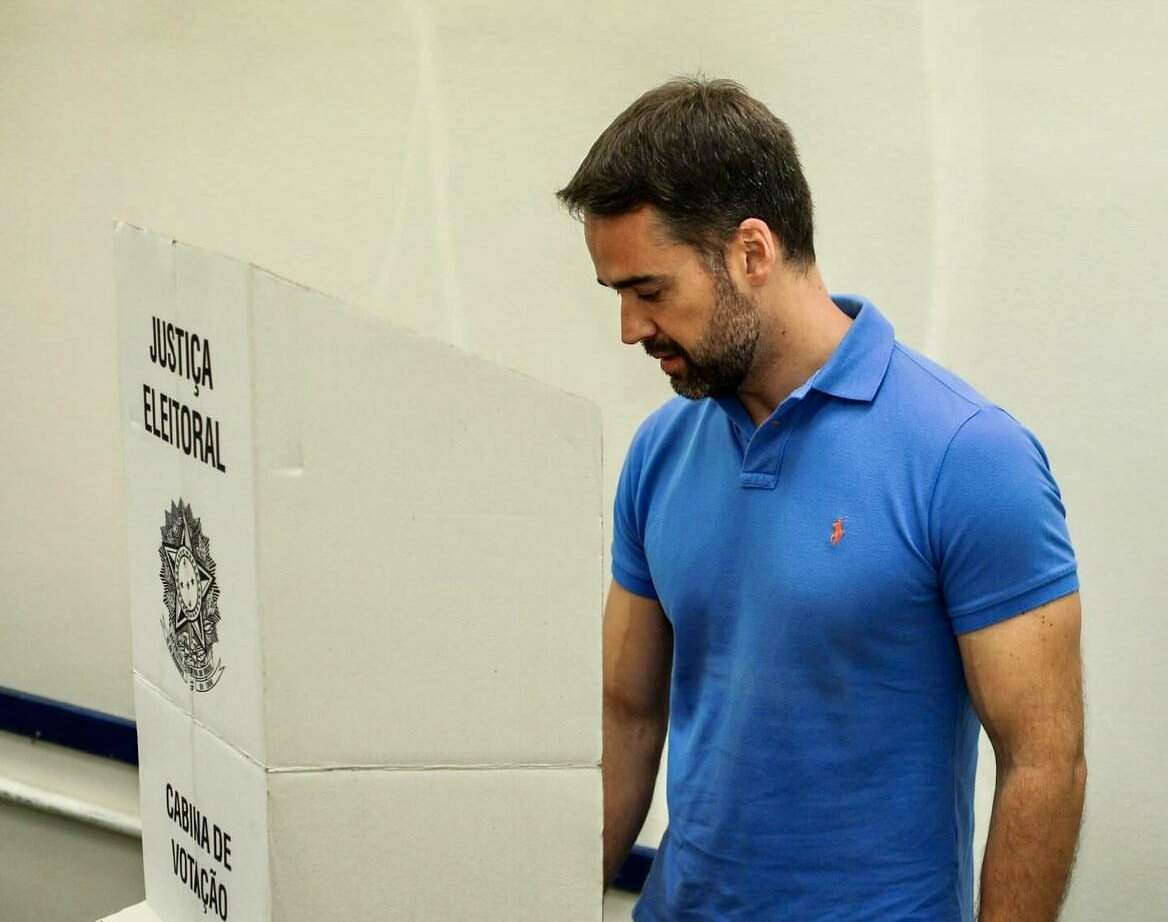O governador do Rio Grande do Sul, Eduardo Leite, votou no Instituto Assis Brasil, em Pelotas, no Sul do Estado, no fim da manhã deste domingo (27). Ele estava acompanhado da prefeita Paula Mascarenhas.