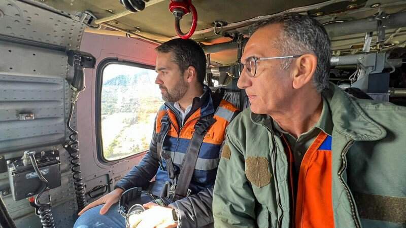 De helicóptero, o governador e os ministros, mais os secretários nacionais de Proteção e Defesa Civil, Wolnei Wolff, e de Assistência Social, André Quintão, e o coordenador estadual de Proteção e Defesa Civil, coronel Luciano Boeira, sobrevoaram os municípios de Caraá, Maquiné e São Leopoldo.