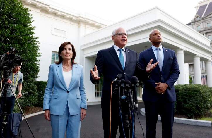 Biden está “apto” para cumprir suas funções, afirmou Tim Walz, enquanto a governadora do Estado de Nova York, Kathy Hochul, assegurou que Biden “estava na corrida para vencer”. “O presidente é nosso candidato. O presidente é nosso líder partidário”, disse Wes Moore.