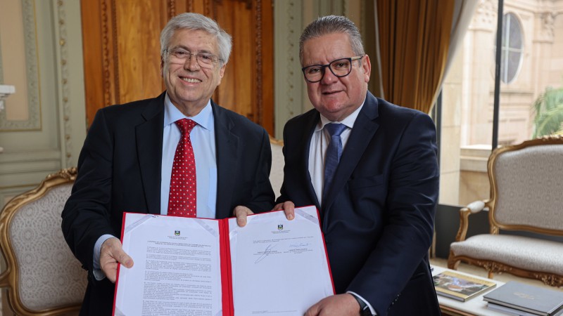 O Rio Grande do Sul e o Uruguai firmaram, nesta quinta-feira (7), um acordo de cooperação turística. Assinado pelo governador Ranolfo Vieira Júnior e pelo ministro do Turismo do Uruguai, Tabaré Viera, em agenda no Palácio Piratini, o documento visa fortalecer e expandir a cooperação técnica bilateral no setor de turismo.