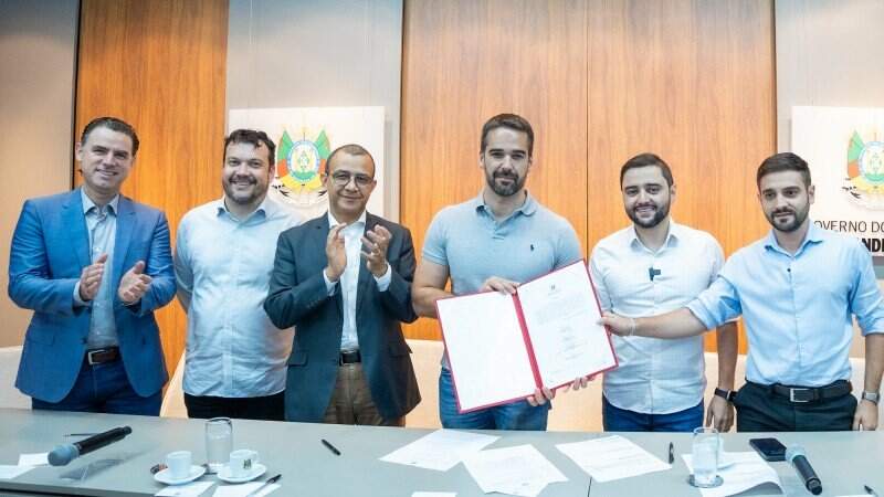 Em solenidade realizada no Palácio Piratini, Leite assinou dois documentos: o decreto de desapropriação de área em Muçum para construção de moradias e a delegação de competência para que a Semhab (Secretaria de Habitação e Regularização Fundiária) formalize um termo de cooperação com o Sinduscon-RS (Sindicato da Indústria da Construção Civil) para erguer casas temporárias em Roca Sales.