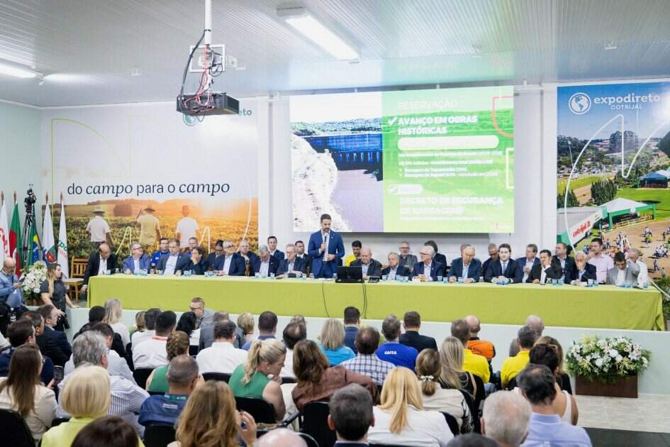 Durante a abertura da Expodireto Cotrijal, em Não-Me-Toque, nesta segunda-feira (10), o governador Eduardo Leite anunciou o repasse de R$ 46,7 milhões a municípios afetados pela estiagem, além da publicação de dois decretos relacionados a estratégias de mitigação desse fenômeno, que possibilitarão melhorias no Sistema de Outorga de Água e estabelecerão novas regras para a segurança de barragens.